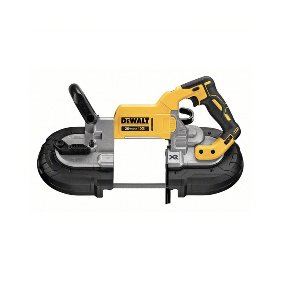 This is a Dewalt 18V bandsaw, 5" deep, tool only. This portable band saw is designed for cutting various materials, including metal, with precision and control, ideal for overhead or tight-space applications.