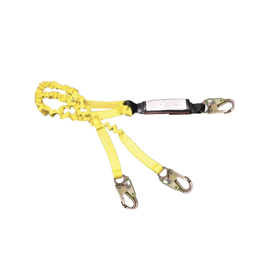 This is a French Creek double leg stretch lanyard, 6 feet. This energy-absorbing lanyard is designed to connect a worker's harness to an anchor point, providing fall arrest and reducing impact forces in the event of a fall.
