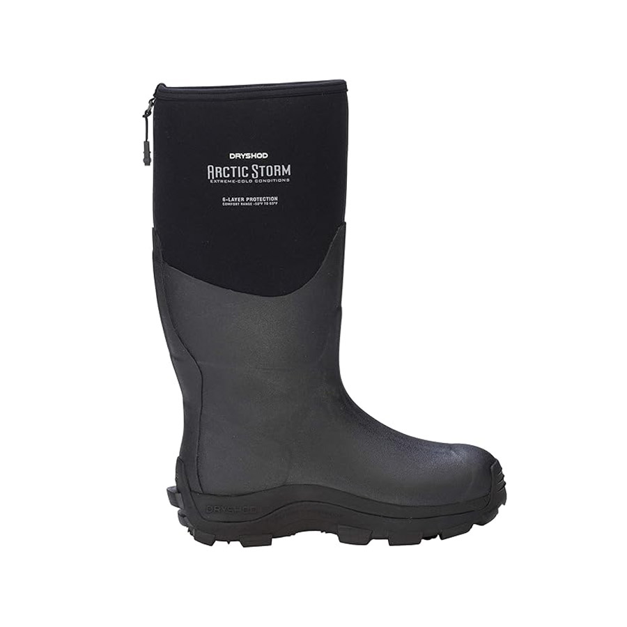 This is a Dryshod Mens Arctic Boot, black, size 11. These insulated and waterproof boots are designed for cold weather and wet conditions, providing comfort and protection in challenging outdoor environments.