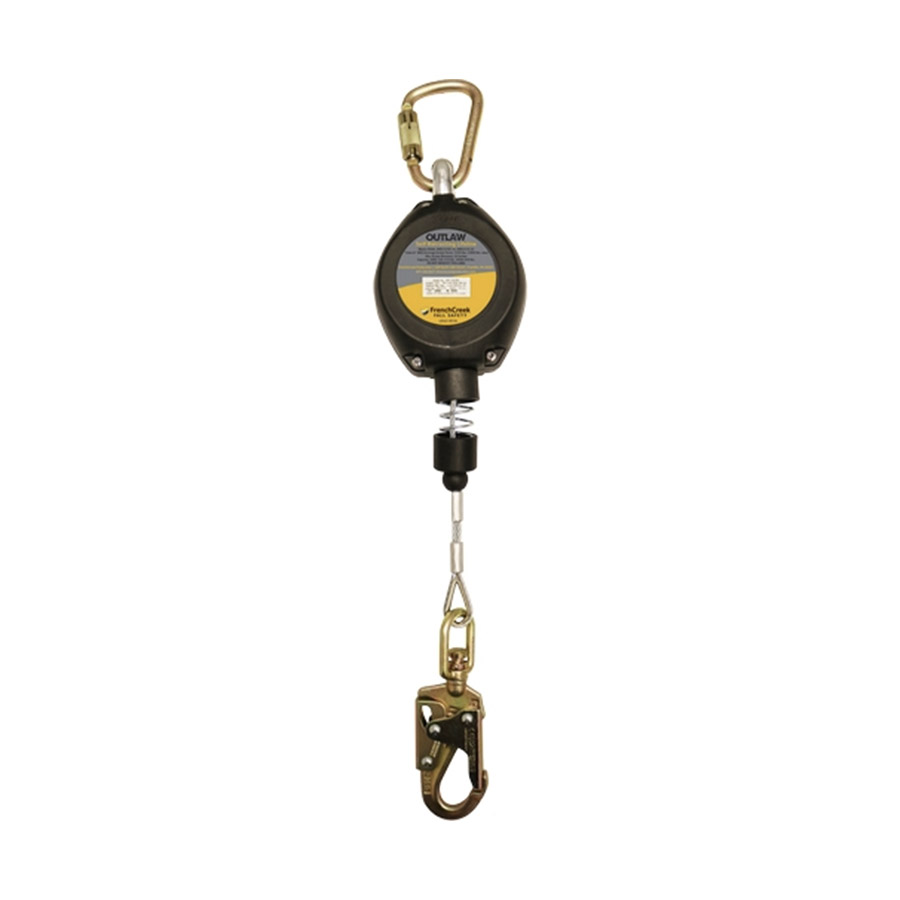 This is a French Creek self-retractable life line, 11', with galvanized wire rope. This self-retracting lifeline offers compact and reliable fall protection, allowing workers freedom of movement within a limited range.