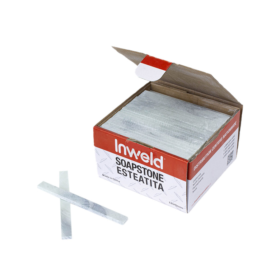 This is an Inweld soapstone flat, 1/2" x 5", 144 per box. This natural mineral chalk is used for marking on metal surfaces, especially for welding, as it leaves a clear line that resists heat.