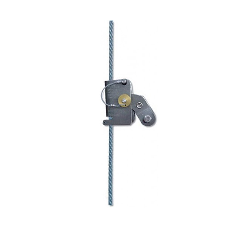 This is a French Creek wire rope grab, 3/8". This device is designed to slide freely along a 3/8" wire rope vertical lifeline and lock instantly in the event of a fall, providing critical fall protection.
